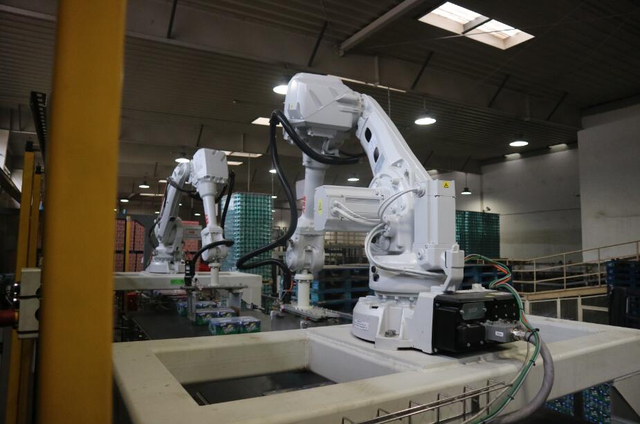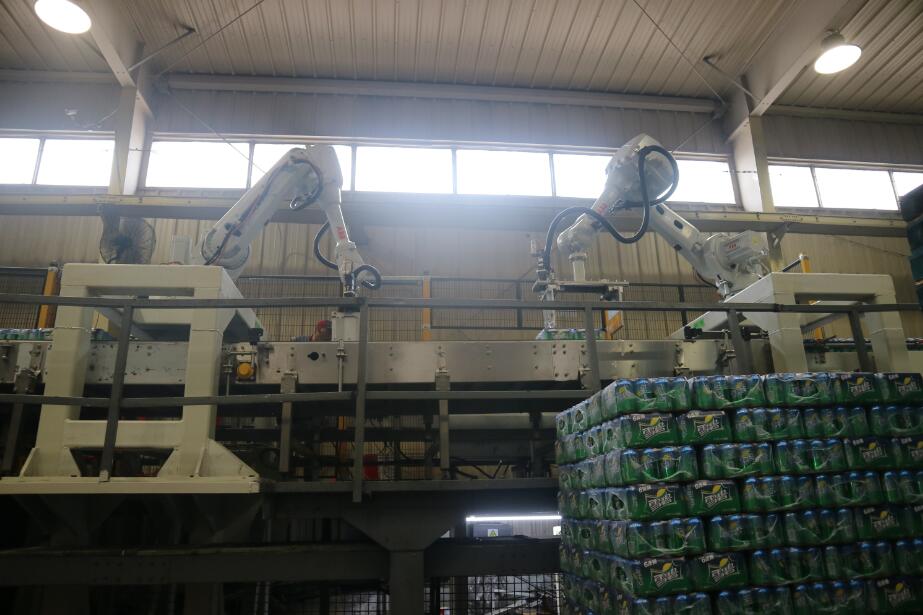 此設備是南京恒昌根據(jù)客戶的實際需求進行定制的,滿足現(xiàn)有普罐9箱、10箱花型、SLEEK CAN、MINI SLEEK CAN13箱花型碼垛需求,并且具備未來2*6、3*4、3*5花型升級功能和生產能力,單臺能力達到60箱/分鐘。設備主體采用ABB智能機器手,通過 SEW伺服電機帶動雙向絲桿,來驅動固定在2根進口導軌上的夾板,對包型夾護后由機器人來進行位移分道,轉向。設備運行穩(wěn)定,高效,占用空間小,減少了對箱包的碰撞和磨損。